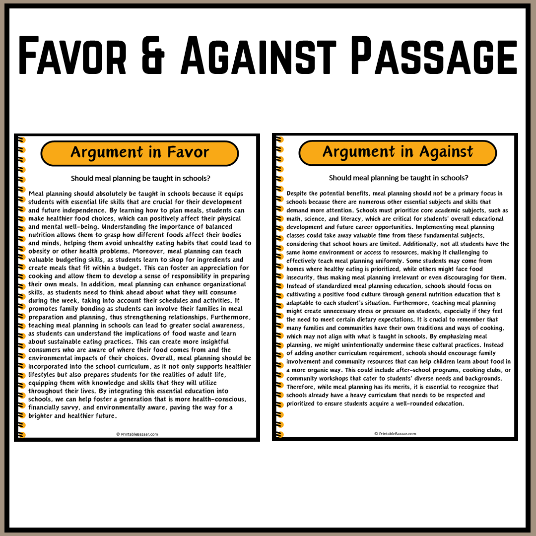 Should meal planning be taught in schools? | Debate Case Study Worksheet