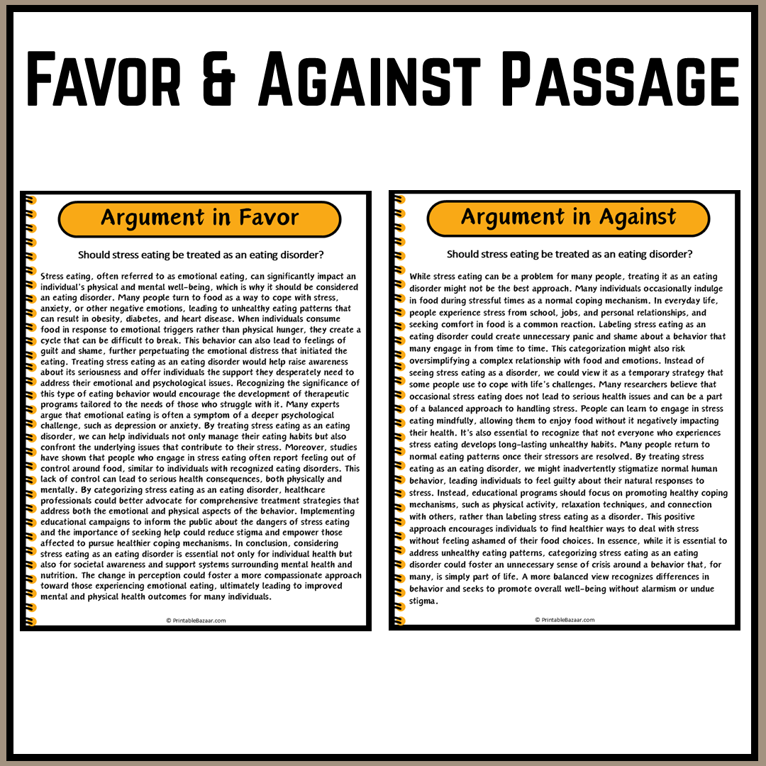 Explore the complex world of stress eating with our engaging digital worksheet! This thoughtfully designed resource dives deep into the debate over whether stress eating should be classified as an eating disorder. With both sides of the argument presented, learners will develop critical thinking skills while gaining valuable insights into how emotional eating affects physical and mental health. Perfect for students, educators, and anyone interested in understanding more about this pressing issue! 📚