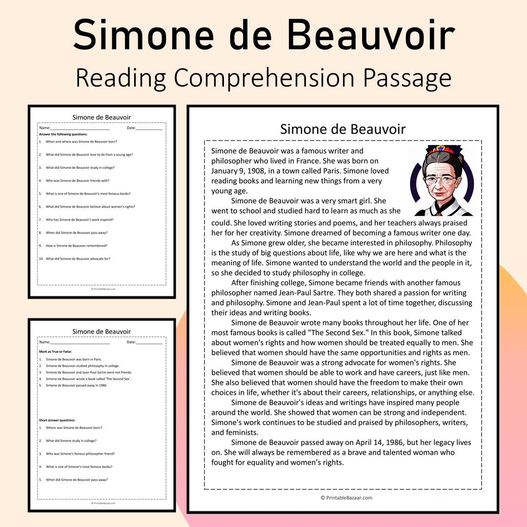 - Engaging Reading Passage: Learn about Simone de Beauvoir's journey from a curious young girl in Paris to a powerful advocate for women's rights. 📖