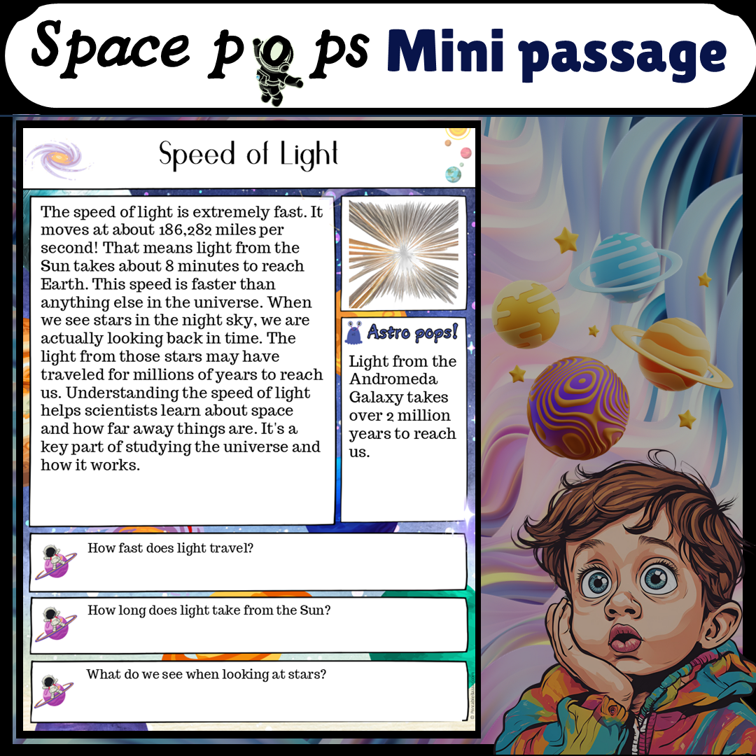 Unleash your inner scientist with our captivating 'Speed of Light' digital worksheet! Designed for curious minds, this engaging resource dives deep into one of the most fascinating concepts in physics. Learn why the speed of light, at an astonishing 186,282 miles per second, is not only fast but also essential for understanding our universe. 🌞✨