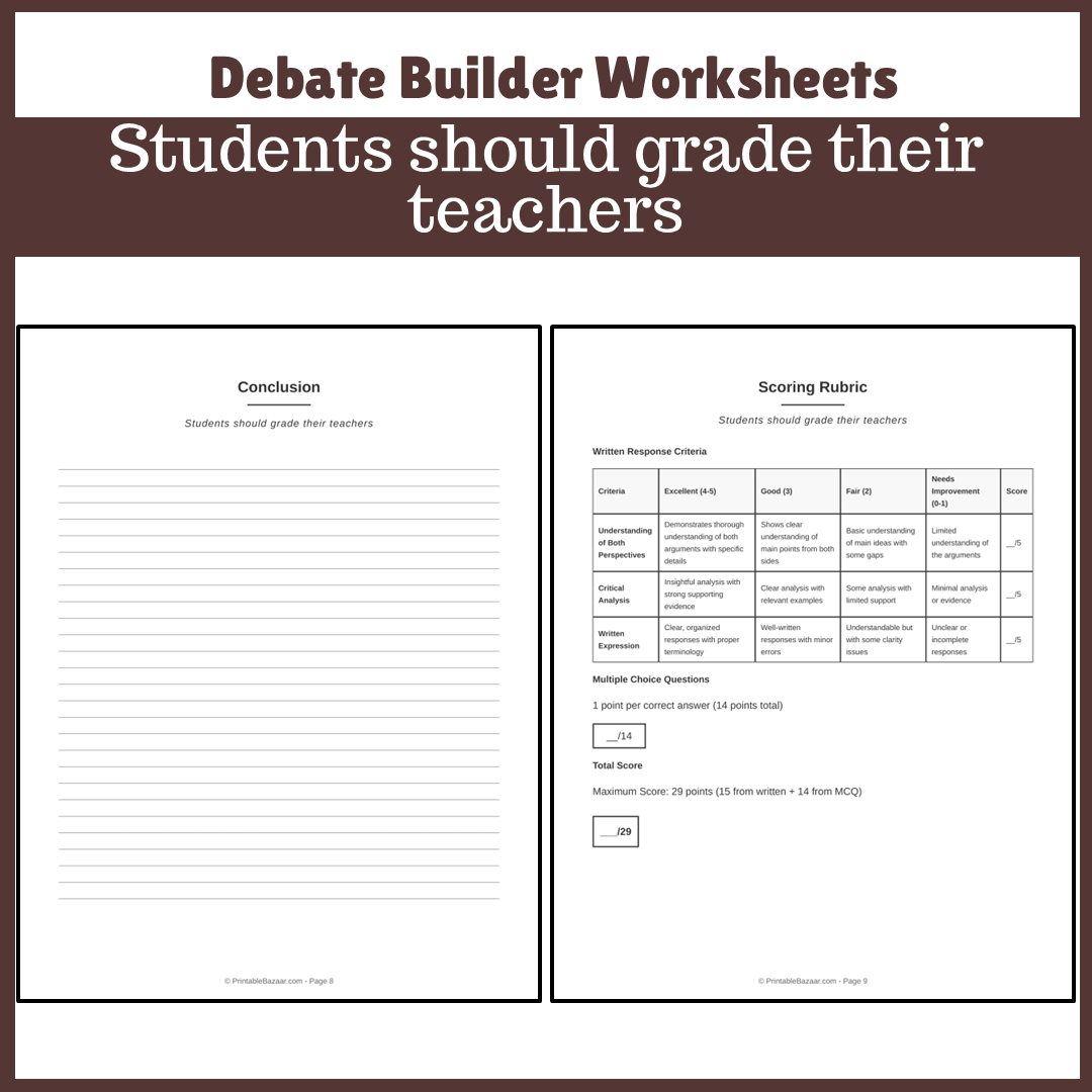 Students should grade their teachers | Favour and Against Worksheet Printable Activity