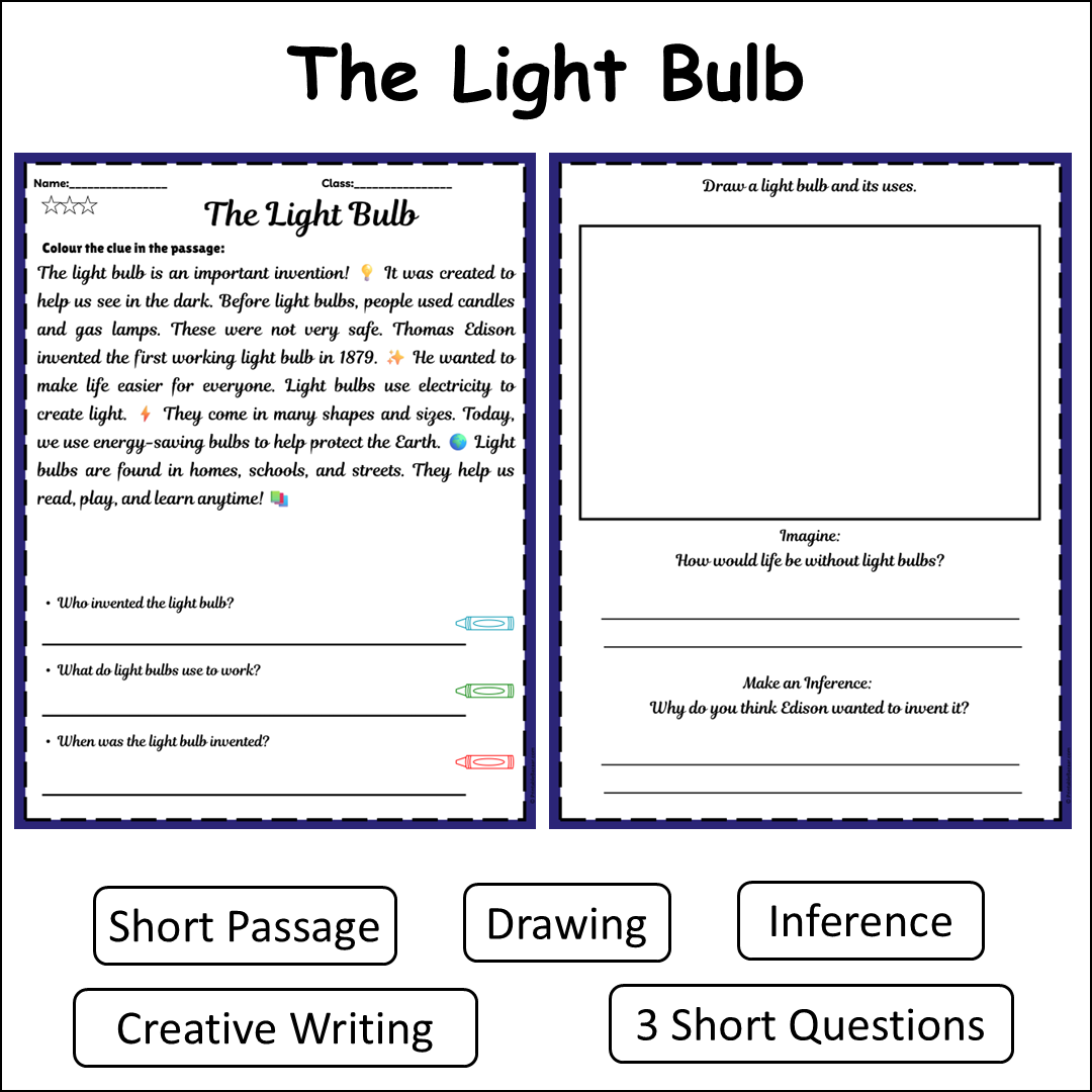 The Light Bulb | Short Reading Comprehension Creative Worksheet